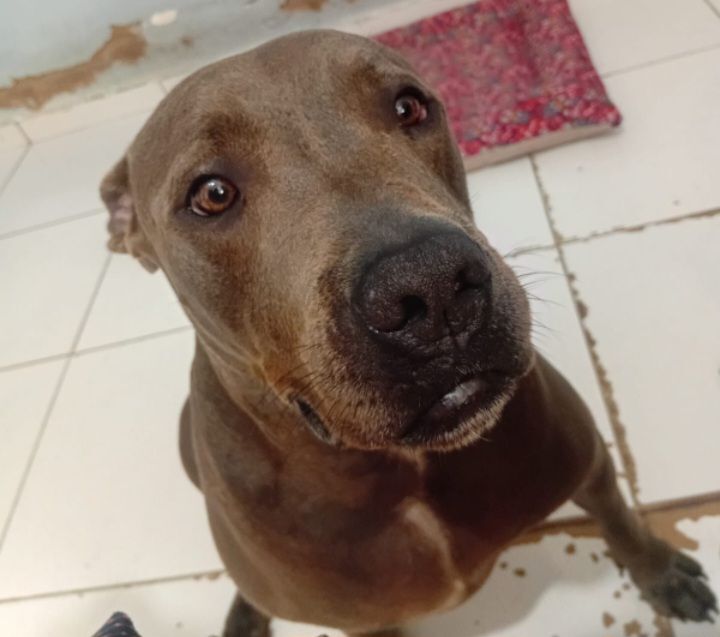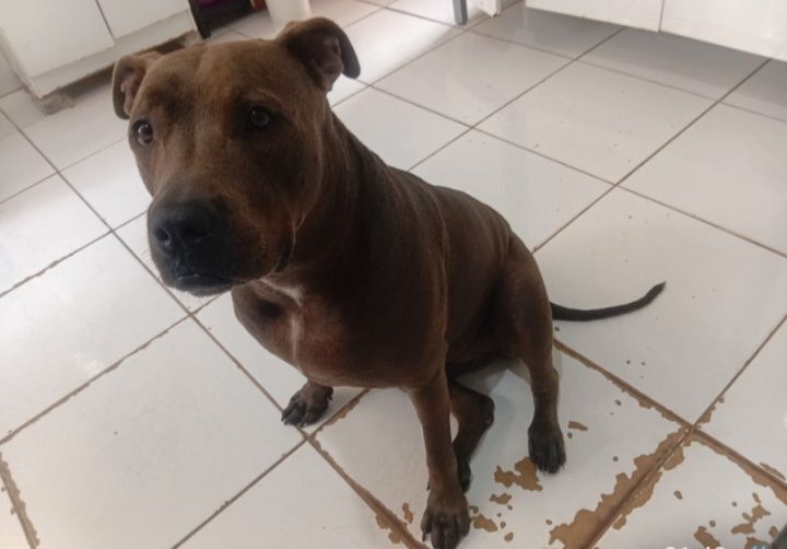 Cadela grande, 3 anos, Pit-Bull, cor Cinza.