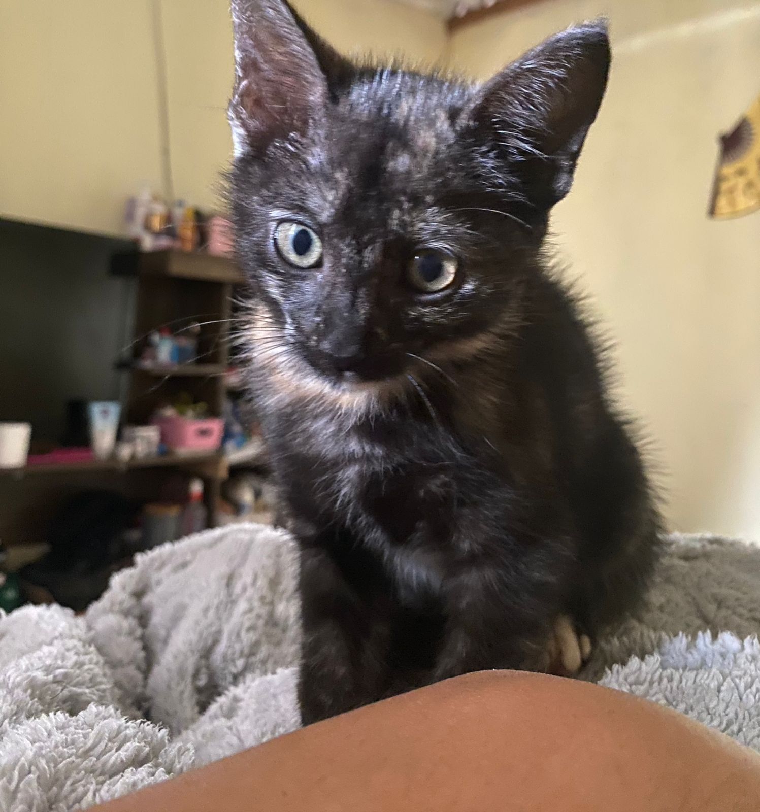 Gata média, 2 a 6 meses, SRD-ViraLata, cor Preta/Marrom.