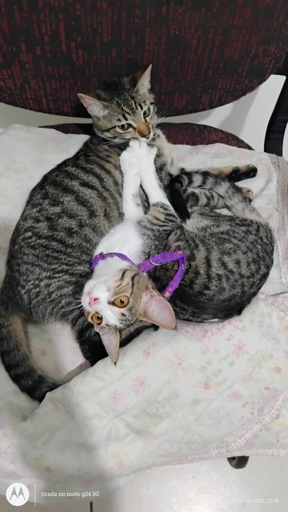 Nina e Layla são duas adoráveis gatinhas da raça SRD (Vira-Lata) disponíveis para adoção. Com pelagem rajada encantadora, essas fofuras estão na faixa etária de 7 a 11 meses e possuem porte médio, perfeito para quem busca uma companhia equilibrada. Ambas têm todas as vacinas em dia e já foram vermifugadas, garantindo a saúde e bem-estar delas. O temperamento é um dos grandes atrativos: são dóceis, calmas e ao mesmo tempo adoram brincar e receber carinho. Elas demonstram ser muito carentes e adorariam um lar onde possam receber atenção e amor. Outro ponto positivo é que se adaptam bem a apartamentos, sendo a escolha ideal para quem vive em espaços menores. Além disso, são sociáveis com desconhecidos, o que facilita visitas de amigos e familiares. Se você está em busca de duas companheiras amorosas e divertidas, Nina e Layla são a escolha perfeita, prontas para trazer alegria e amor ao seu lar. Dê a elas a oportunidade de fazer parte da sua família!